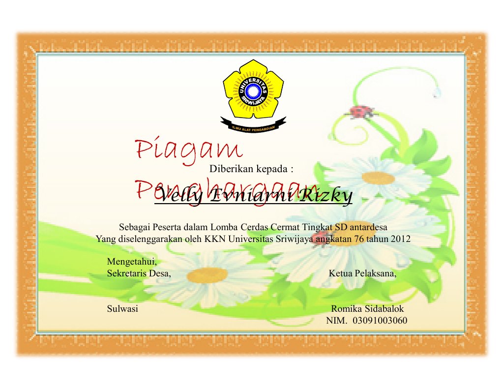 Sudah banyak contoh piagam penghargaan yang bisa anda pakai. Ahem mendapatkan piagam penghargaan karena memenangkan lomba cerdas cermat tingkat kabupaten. Pada seleksi sitta lomba pendidikan agama islam tingkat. N a m a : Lomba peringatan hari besar islam (phbi)full description.